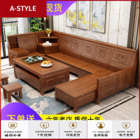 苏宁放心购现代中式香樟木全实木沙发组合客厅贵妃转角仿古储物木质套装家具A-STYLE家具