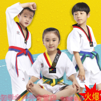 闪电客成人儿童跆拳道服纯棉短袖长袖男女抬拳道服装初学者训练衣服定制