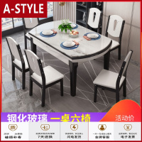 苏宁放心购钢化玻璃餐桌椅组合可伸缩现代简约大理石实木餐桌小户型饭桌家用A-STYLE