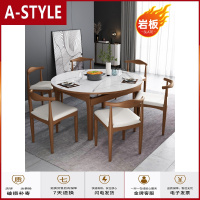 苏宁放心购北欧岩板餐桌椅组合现代简约轻奢大理石伸缩饭桌实木圆形餐桌家用A-STYLE