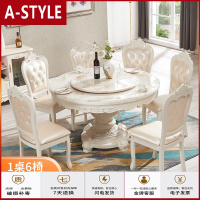苏宁放心购欧式大理石餐桌圆桌实木餐桌椅组合简约家用圆形带转盘8人吃饭桌A-STYLE