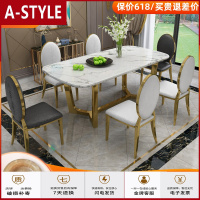 苏宁放心购轻奢餐桌大理石北欧后现代简约创意定制家用镀金不锈钢餐桌椅组合A-STYLE
