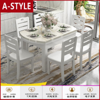 苏宁放心购北欧大理石餐桌椅组合可伸缩家用经济型简约现代折叠方圆两用餐桌A-STYLE