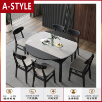 苏宁放心购北欧轻奢岩板伸缩圆形餐桌带电磁炉现代简约大理石折叠餐桌椅组合A-STYLE