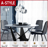 苏宁放心购北欧轻奢大理石餐桌家用现代简约小户型岩板圆形餐台带转盘1.35米A-STYLE