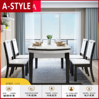 苏宁放心购轻奢可伸缩大理石餐桌椅组合家用小户型现代简约折叠北欧实木圆桌A-STYLE