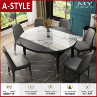 苏宁放心购大理石餐桌椅组合现代简约可伸缩折叠家用小户型全实木岩板圆饭桌A-STYLE