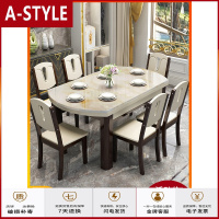 苏宁放心购现代简约大理石面实木伸缩折叠餐桌椅组合6人家用小户型饭桌圆桌A-STYLE