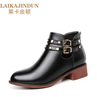 莱卡金顿 女短靴时尚女靴秋冬单靴高跟粗跟裸靴小圆头及踝靴 6580