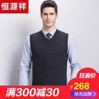 恒源祥男羊毛背心V领爸爸装针织衫中老年纯羊毛马甲坎肩毛衣