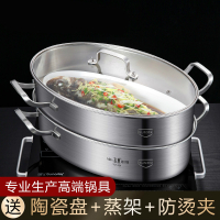 蒸鱼锅蒸锅不锈钢304大容量蒸海鲜馒头锅大号家用加厚2层椭圆蒸锅伊麦卡