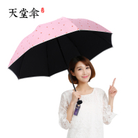 天堂伞太阳伞防紫外线女士晴雨伞折叠遮阳伞三折黑胶防晒伞可爱波点伞轻便 甜甜蜜蜜清仓