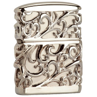 美国ZIPPO打火机 芝宝 王者战衣重盔甲套壳 四面镂空唐草富贵花 金缕玉衣银色卷轴花刻字
