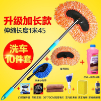 新款洗车刷子长柄伸缩棉线软毛掸子工具拖布专用拖把擦车除尘汽车用品 橘色纳米水刷10件套 抖音