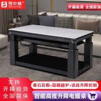 雪中情电暖桌取暖桌升降茶几电烤炉电炉桌家用多功能长方形餐桌X23A300A轻奢白1398*75金管发热磁炉