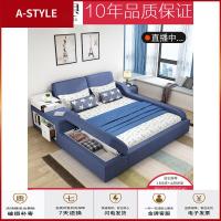 苏宁放心购经典榻榻米布艺床主卧1.8米双人床布床拆洗储物简约现代软床2.2米A-STYLE家具