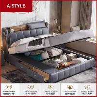 苏宁放心购真皮床现代简约智能家具高箱储物主卧榻榻米婚床小户型北欧双人床A-STYLE家具