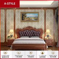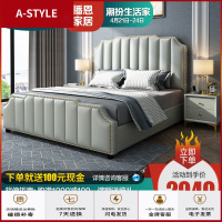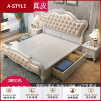 苏宁放心购欧式床全实木床1.8米双人床主卧真皮大床现代简约婚床简欧公主床A-STYLE家具