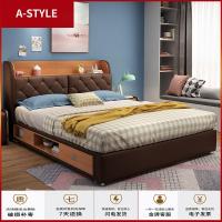 苏宁放心购皮床1.8米双人婚床现代简约床主卧榻榻米欧式皮艺床家具A-STYLE家具