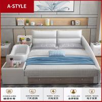 苏宁放心购真皮床现代简约主卧床实木1.8米皮床榻榻米双人床多功能智能婚床A-STYLE家具