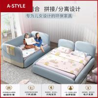 苏宁放心购榻榻米床现代简约二胎亲子大床2.2米3米超大拼接加宽床边儿童皮床A-STYLE家具