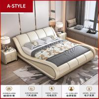 苏宁放心购真皮榻榻米床多功能按摩床皮床1.8米智能婚床现代简约主卧双人床A-STYLE家具