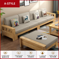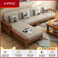 苏宁放心购客厅全实木沙发组合现代三人位布艺沙发床中式农村木质小户型沙发A-STYLE家具