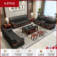 苏宁放心购办公沙发简约现代沙发茶几组合会议室商务接待洽谈三人位真皮沙发A-STYLE家具