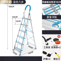 不锈钢梯子家用折叠人字梯五步加厚室内伸缩古达多功能铝合金家庭合梯 升级不锈钢防滑条六步梯蓝色