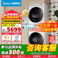 [官方正品]美的洗烘套装 10KG全自动滚筒洗衣机+热泵烘干机 智能投放MG100AIR1PLUS+MH100AIR1
