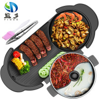 益多 双控烤涮一体锅多功能煎炒蒸煮涮 韩式家用无烟不粘电火锅 可分离鸳鸯锅GM-8003