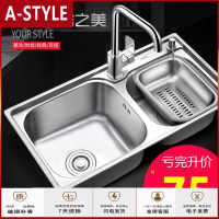 苏宁放心购加厚厨房不锈钢304拉丝水 双带刀架洗菜盆洗碗池水盆套餐A-STYLE