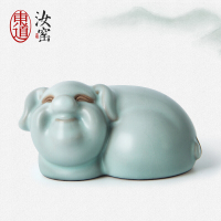 东道 汝窑 猪年生肖茶宠 创意摆件 茶道配件 陶瓷 冰裂釉 礼盒装 天青 吉福猪年茶宠(天青)