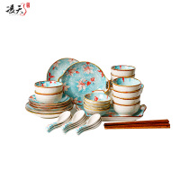 景德镇 凌天浪漫满屋日式和风八人食网红创意陶瓷餐具套装时尚精致家用碗碟鱼盘菜盘汤盘