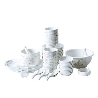 乐享 餐具套装56头陶瓷碗碟套装国产景德镇骨瓷盘子礼品家用吃饭碗盘 白金花语