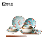富昱景 碗碟餐具套装景德镇家用8人食简约陶瓷碗筷盘子日式餐具情侣吃饭碗盘