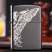 美国ZIPPO打火机 芝宝 黑冰雕刻折翼天使24802 蝴蝶翅膀 天使之翼 男士礼品