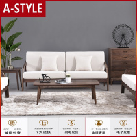 苏宁放心购北欧黑胡桃木沙发全实木布艺组合冬夏两用简约现代小户型客厅家具A-STYLE