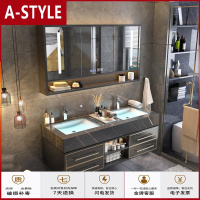 苏宁放心购(定制)岩板浴室柜双盆洗漱台智能镜欧式洗手池洗脸盆定制台盆柜一体盆A-STYLE