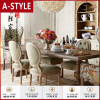 苏宁放心购美式复古做旧餐桌椅组合欧式餐桌欧式实木长方形餐台北欧家具定制A-STYLE家具