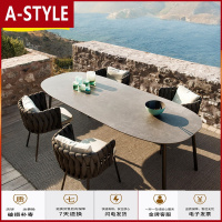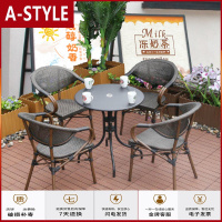 苏宁放心购户外阳台网布咖啡奶茶休闲桌椅庭院带伞外摆室外露天休闲藤椅茶几A-STYLE家具