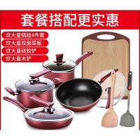 锅具套装+菜板+硅胶铲+木铲 炊大皇锅具套装炒菜锅家用全整套厨房用品炒锅不粘锅三件套组合