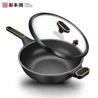 麦饭石不粘锅炒锅家用无烟炒菜锅电磁炉燃煤气灶适用无涂层平底锅新丰腾金典30cm炒锅+微压盖