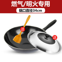 34cm明火/燃气专用/有盖 苏泊尔铁锅炒菜锅炒锅老式家用大圆尖底搪瓷电磁炉煤气灶燃气专用