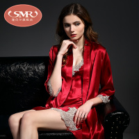 珊目尔新款真丝睡衣女夏季性感蕾丝套装桑蚕丝吊带睡裙睡袍两件套