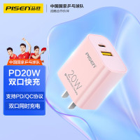 品胜苹果20W充电器双口(粉色)PD快充头Tyepc-C苹果13ProMax/11/12充电插头iPhone14Plus