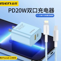 [套装]品胜苹果20W充电器双口(蓝色)+1.8米PD快充线蓝苹果13Pro/Max/11/xs充电插头iPhone12