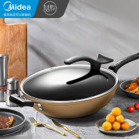 美的喆物 炒锅不粘锅炒菜锅麦饭石色34cm少油烟 可立盖燃磁通用