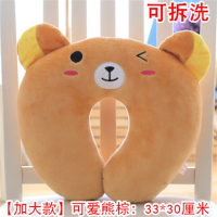 卡通U型枕可爱U型枕头护颈枕旅行护脖子颈椎枕办公室午睡枕护腰垫 猴子大红33*30厘米 [加大款]可爱熊棕33*30厘米