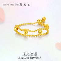 周大生18K金戒指女金色金珠链戒一款多戴diy复古可调节素戒 K金金珠链戒